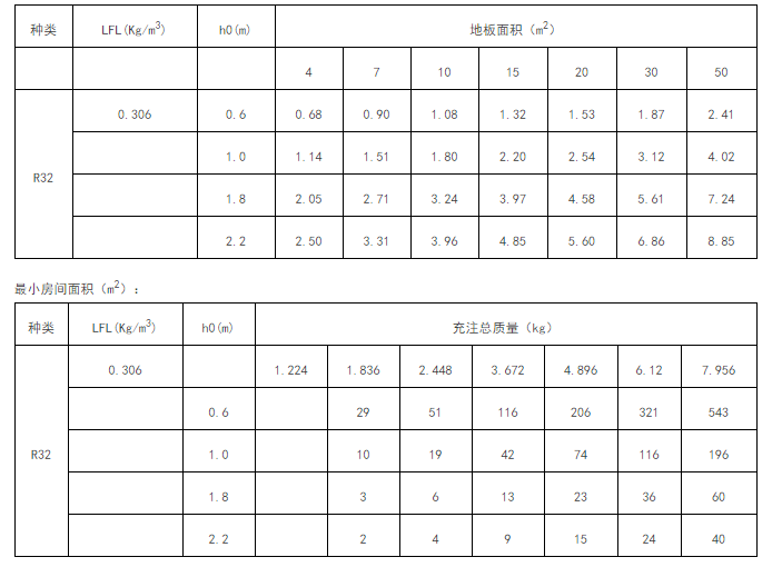 1)安裝前請(qǐng)先閱讀說(shuō)明書(shū),根據(jù)說(shuō)明書(shū)要求選擇合適安裝場(chǎng)所(如安裝房間面積要求,不同冷媒的使用面積詳見(jiàn)下表)。并對(duì)安裝場(chǎng)所進(jìn)行安全檢查,確保沒(méi)有明火和潛在點(diǎn)火源(包括吸煙在內(nèi)),并控制隔離可燃材料。