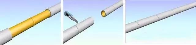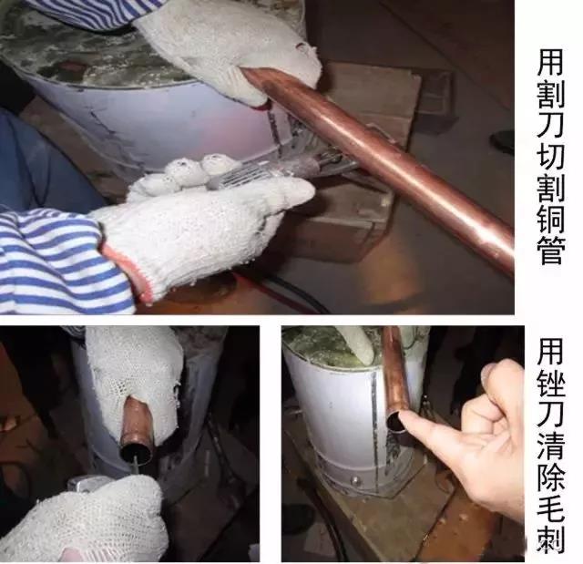 用割刀在銅管前端將襯塑部分隔開(kāi)并與銅管隔離,然后用手和鉗子將襯塑部分將銅管前端10cm剝離,杜絕用小刀剝離,造成銅管劃痕。