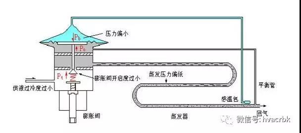按照這一定律,如果膨脹閥出口壓力過低,相應(yīng)的蒸發(fā)壓力和溫度也過低。但由于進(jìn)入蒸發(fā)器流量的減少,壓力的降低,造成蒸發(fā)速度減慢,單位容積(時(shí)間)制冷量下降,制冷效率降低。